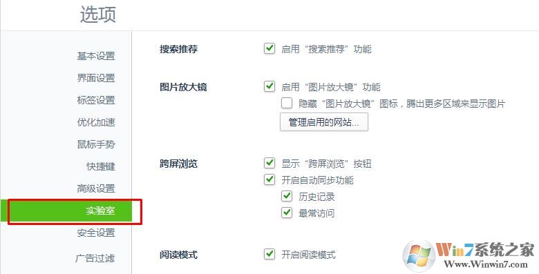 2、然后在設(shè)置中左側(cè)的點(diǎn)擊實(shí)驗(yàn)室選項(xiàng);