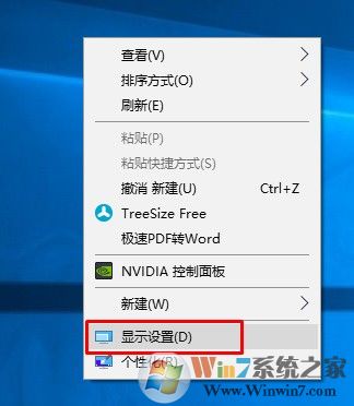 1、右鍵桌面選擇顯示設(shè)置。