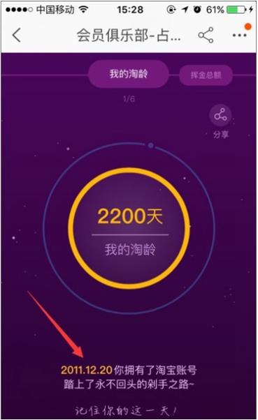 5、這里就可以顯示你的淘齡,多少天這樣,下面的日期就是你的淘寶注冊時(shí)間