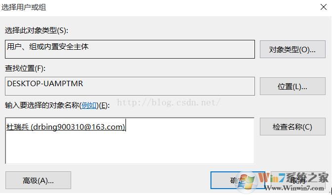 3、這時出現(xiàn)選擇用戶和組的界面,再點(diǎn)擊【高級】按鈕;