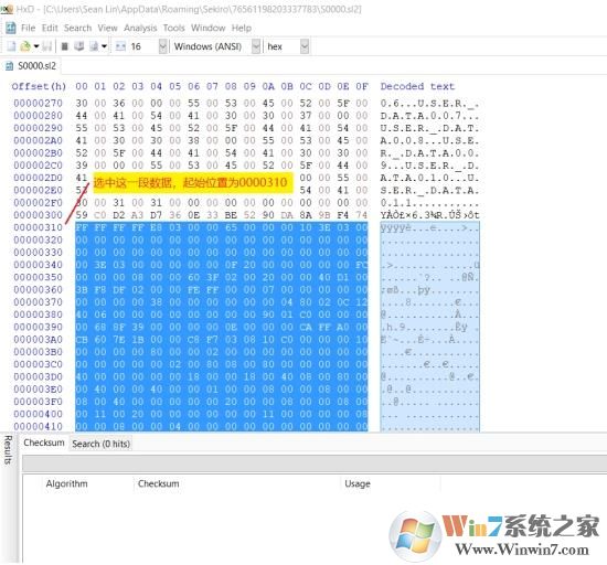 2、用下載的編輯器打開(kāi)存檔文件S0000.sl2,選中00000310到0010030F的數(shù)據(jù)。