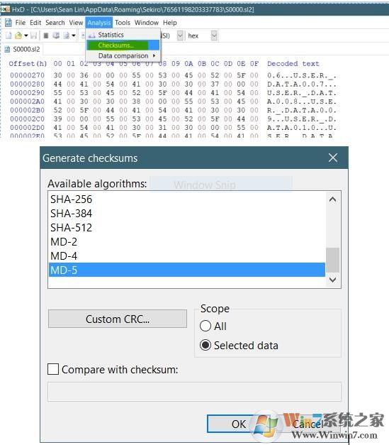 2、計(jì)算所選數(shù)據(jù)的MD5值。