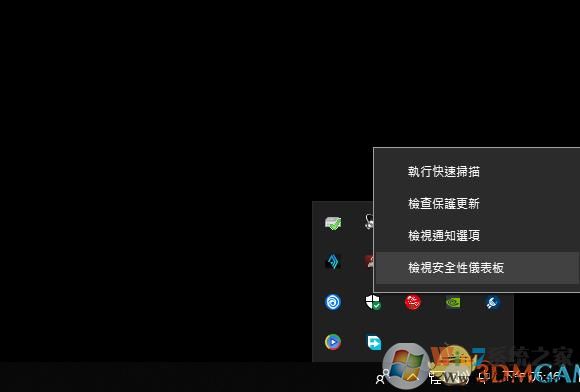 1、首先在Win10右下角右鍵點擊Windows Defender圖標(biāo),按右鍵點選【檢視安全性儀表板】。如下圖