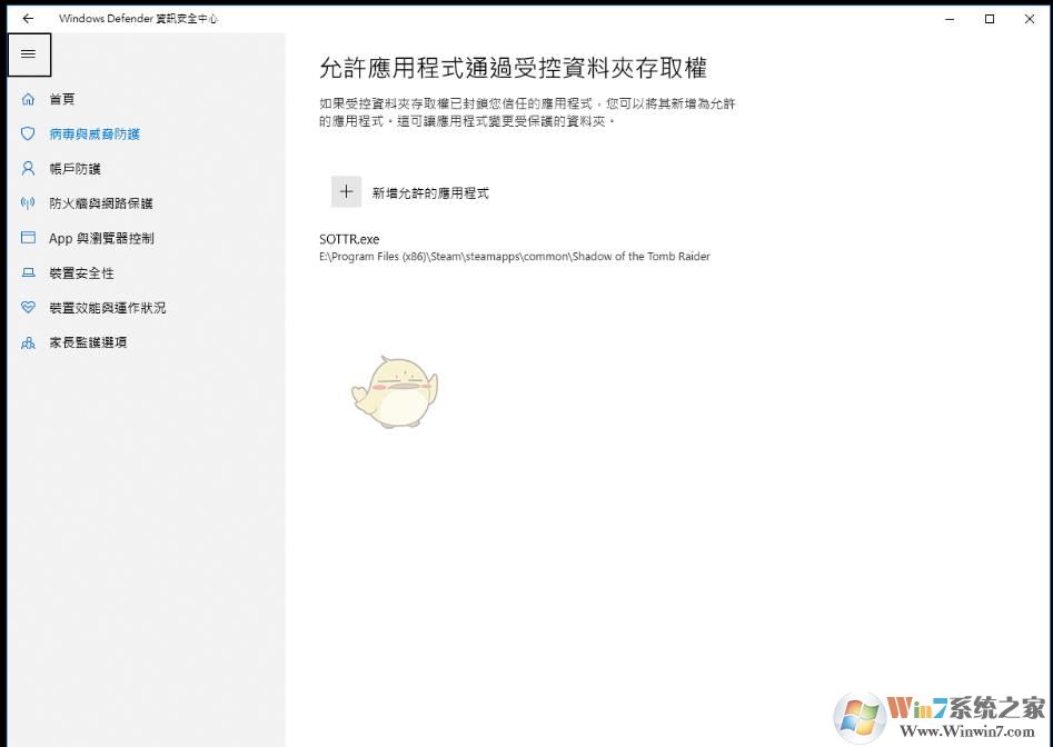 4、點選【允許應(yīng)用程式通過受控資料夾存取權(quán)】。