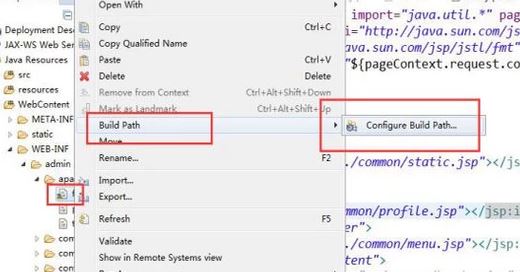 1、選中jsp文件,然后點(diǎn)擊Build Path----Configure Build  Path ,如下圖所示: