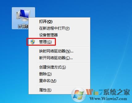1、右鍵點(diǎn)擊桌面上的“計(jì)算機(jī)”,此電腦圖標(biāo),然后選【管理】;