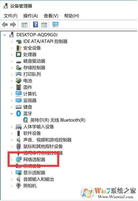4、設備管理器里有一個網(wǎng)絡適配器,就是網(wǎng)卡了,我們要展開查看