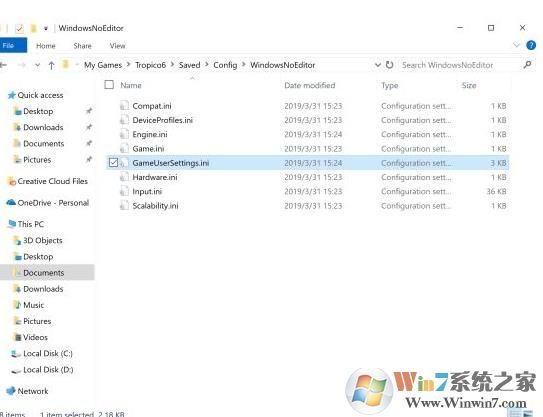 2、然后找到GameUserSettings.ini文件打開;