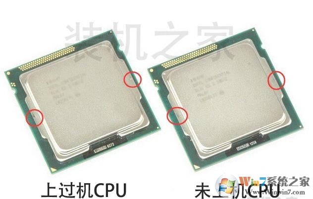 由于散片CPU沒有零售包裝盒,所有我們需要懂得區(qū)別散片新舊,來看看上過機(jī)使用過的CPU和全新未上過機(jī)有什么區(qū)別,如下圖所示。