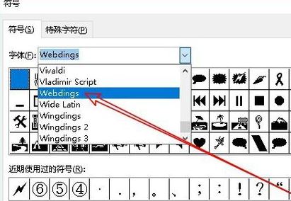 5、在字體中選擇“webdings”菜單項,如圖: