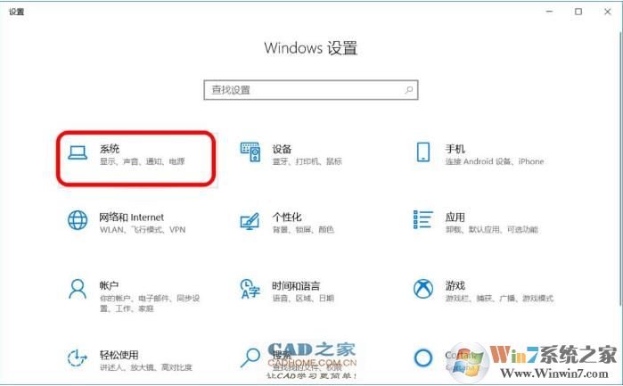 2、在 Windows 設(shè)置窗口中,我們點擊【系統(tǒng)】- 顯示、聲音、通知、電源;