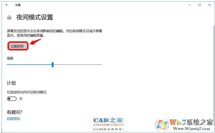 5、在夜間模式設(shè)置窗口中,我們看到: