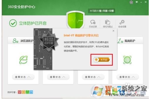 第二步,打開了如圖“360安全防護(hù)中心”,再點(diǎn)擊右上角的“核晶防護(hù)”圖標(biāo);
