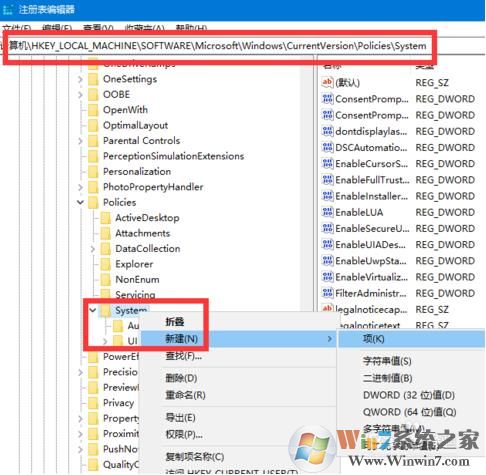 2、然后再進入依次進入下面項目Windows\CurrentVersion\Policies\System