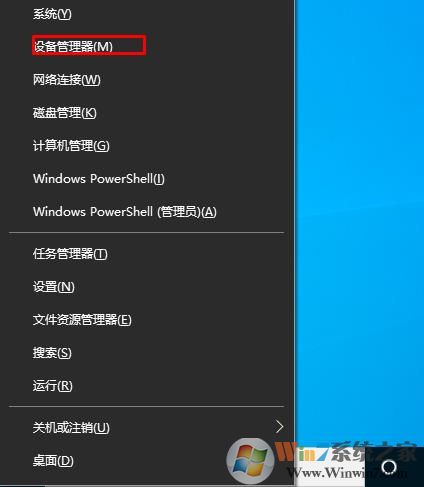1、首先在win10下按WIN+X,然后打開(kāi)“設(shè)備管理器”;