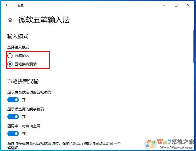 2、這時我們可以看到有 五筆輸入和五筆拼音混輸兩個選項。