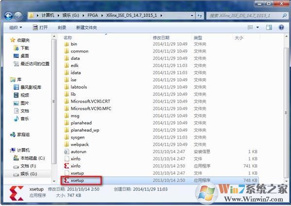 3、打開(kāi)Xilinx_ISE_DS_14.7_1015_1文件夾,然后點(diǎn)擊setup.exe,進(jìn)行安裝:接下去安裝是套用的Win7,步驟和Win10是一樣的。大家看圖操作就可以了。