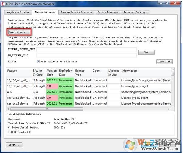 10、點(diǎn)擊“Load license”,找到許可文件xilinx_ise.lic。cncxm.com win7系統(tǒng)之家
