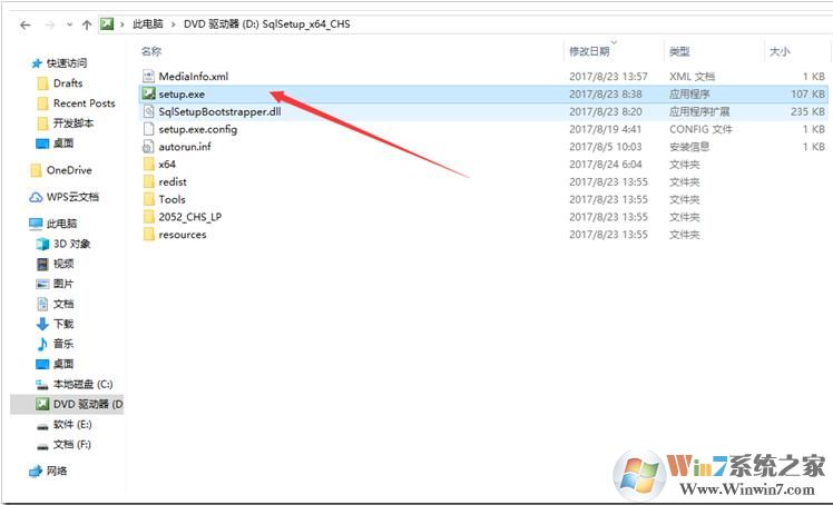 3、開始SQL Server 2017的安裝,如果下載的壓縮包,先解壓就可以看到Setup.exe,如果是ISO鏡像,可以用虛擬光驅(qū)安裝,。