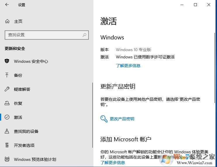 1.在Windows設(shè)置—>>更新和安全——>>更改產(chǎn)品密鑰: