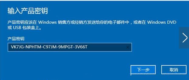 2、直接更改產(chǎn)品密鑰,可以從上面的三個(gè)密鑰中任選一個(gè)。輸入后等待系統(tǒng)驗(yàn)證。