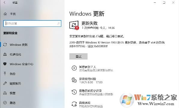 Win10 1903五月更新KB4497936安裝失敗0x800f081f最新解決方法