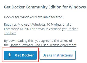 Docker下載地址為:https://store.docker.com/editions/community/docker-ce-desktop-windows 打開網(wǎng)頁(yè)之后點(diǎn)擊如圖 Get docker處即可下載安裝包: