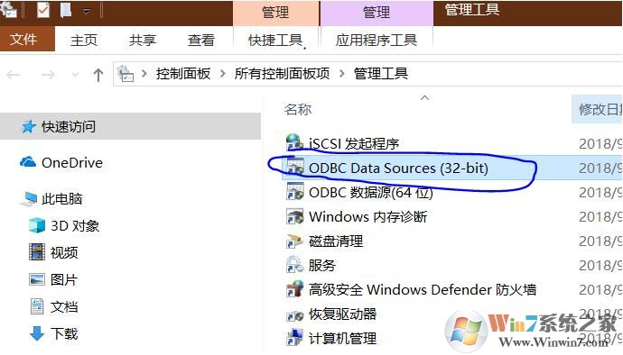 1.在控制面板)——管理工具,中打開(kāi) ODBC Data Sources(32-bit);