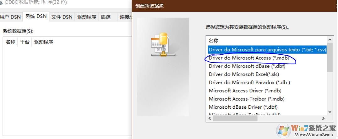 2、系統(tǒng)DSN中,點(diǎn)擊添加,然后創(chuàng)建新新數(shù)據(jù)源里,選擇Driver do Microsoft Access(*.mdb)如下圖;