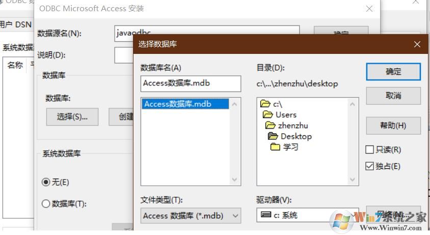 5.找到自己創(chuàng)建的Access.mdb文件,文件位置你自己保存的位置(我保存到桌面了)
