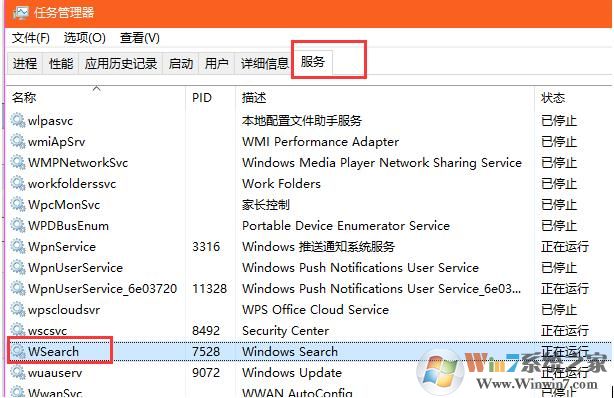 然后在服務(wù)界面之后,找到并重新啟動wservice服務(wù),這個服務(wù)是管搜索的!