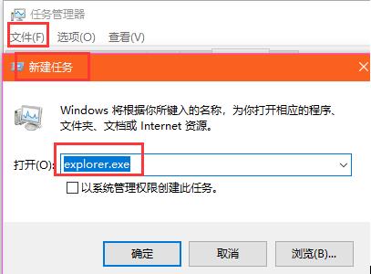 (2)在文件中選中運行新任務(wù),輸入explorer.exe點擊運行