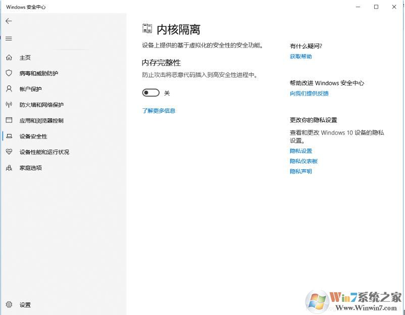 2、在windows defender安全中心中—>設備安全性—>內(nèi)存完整性 關閉掉就好了。