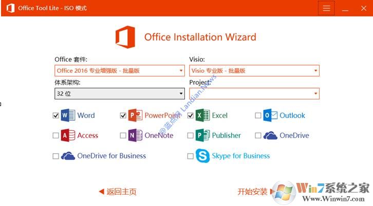 使用 Office Tool Lite 配置一個(gè)顯示 UI 界面的 Microsoft Office 2016 批量授權(quán)版的安裝,其配置結(jié)果如下。
