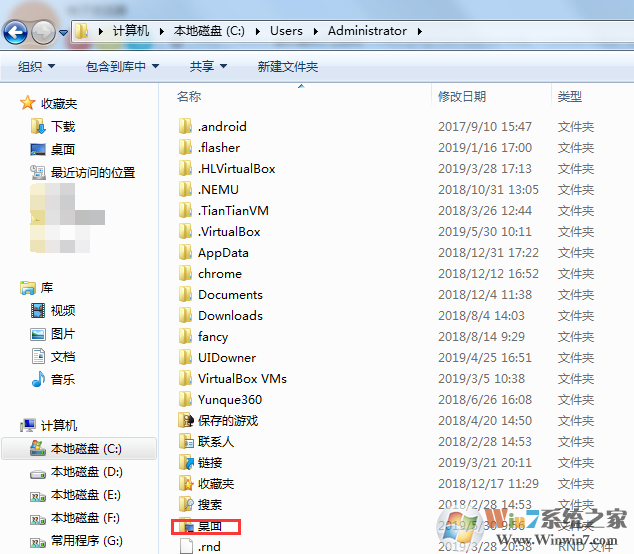 1、首先打開文件夾:C:\Users\Administrator (紅色是你的用戶名)然后我們就可以看到桌面了如下圖