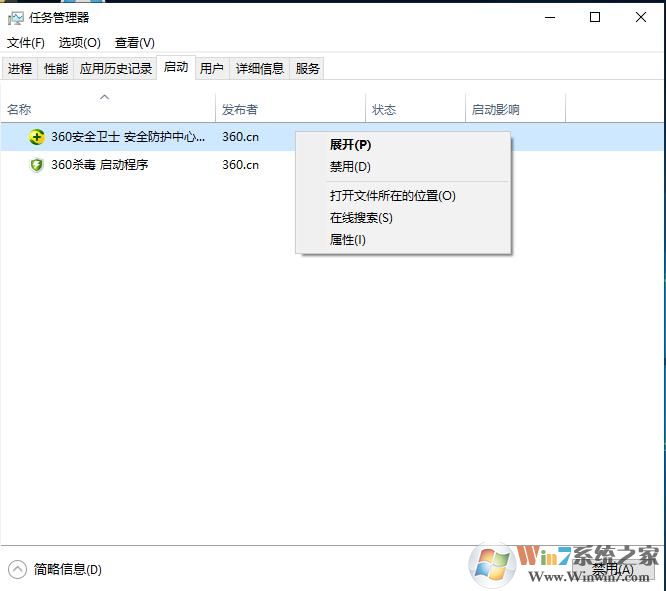 3、大家也可以打開Windows任務(wù)管理器,減少開機(jī)啟動項,如下圖