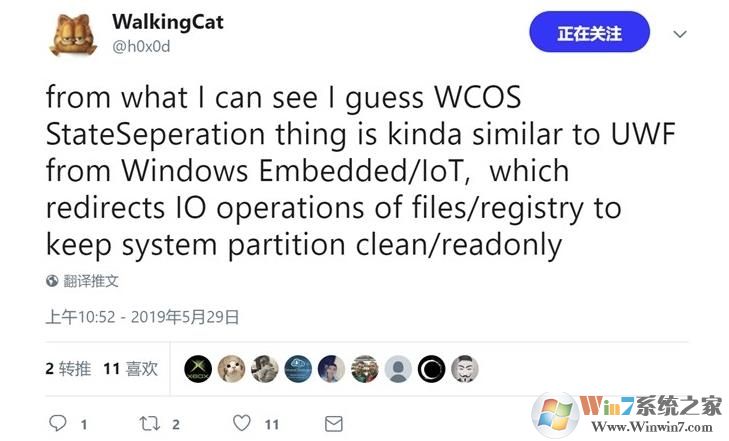 根據(jù)WalkingCat的發(fā)現(xiàn),該系統(tǒng)存在Win32桌面模式的ComposableShell,WCOS StateSeperation有些類(lèi)似Windows Embedded/IoT的UWF,它重定向文件/注冊(cè)表的IO操作以保持系統(tǒng)分區(qū)清潔/只讀。