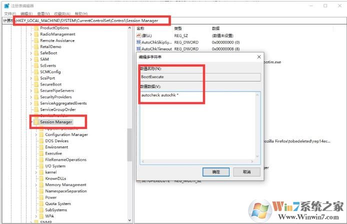 1、打開注冊(cè)表,在HKEY_LOCAL_MACHINESYSTEMCurrentControlSetControlSession Manager中將BootExecute鍵值備份后刪除,阻止該程序繼續(xù)自動(dòng)啟動(dòng)。