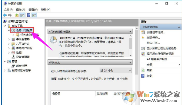 2、然后在計(jì)算機(jī)管理界面里我們點(diǎn)擊任務(wù)計(jì)劃程序,如下圖繼續(xù)點(diǎn)任務(wù)計(jì)劃程序庫以及Microsoft