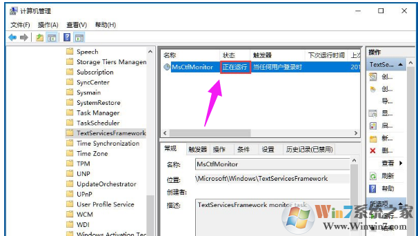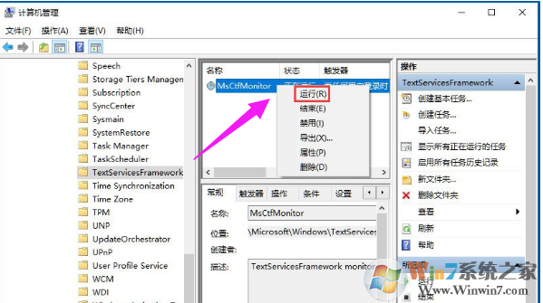 5、右鍵點(diǎn)擊MsCtfMonitor計(jì)劃任務(wù),然后點(diǎn)運(yùn)行