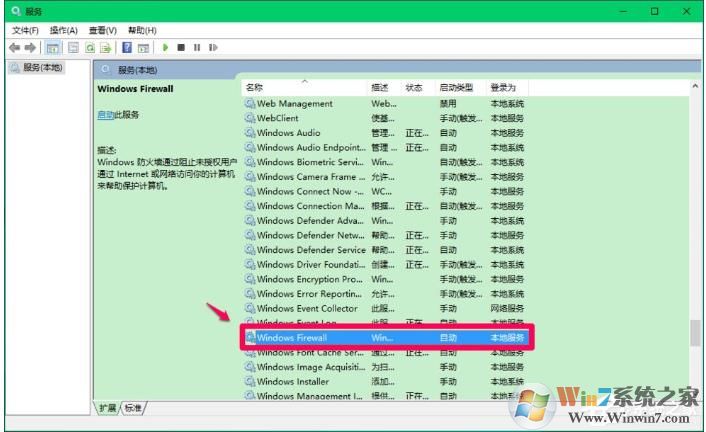 2、在本地服務(wù)窗口中,找到Windows Firewall服務(wù),如果沒有啟用,左鍵雙擊Windows Firewall;