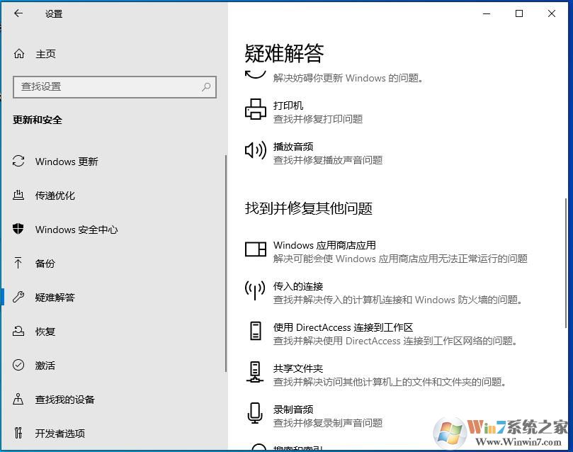 3、接下來我們就可以看到疑難解答選項了,點擊一下右側就是關于各個功能的疑難解答,點擊即可開始診斷檢測問題。