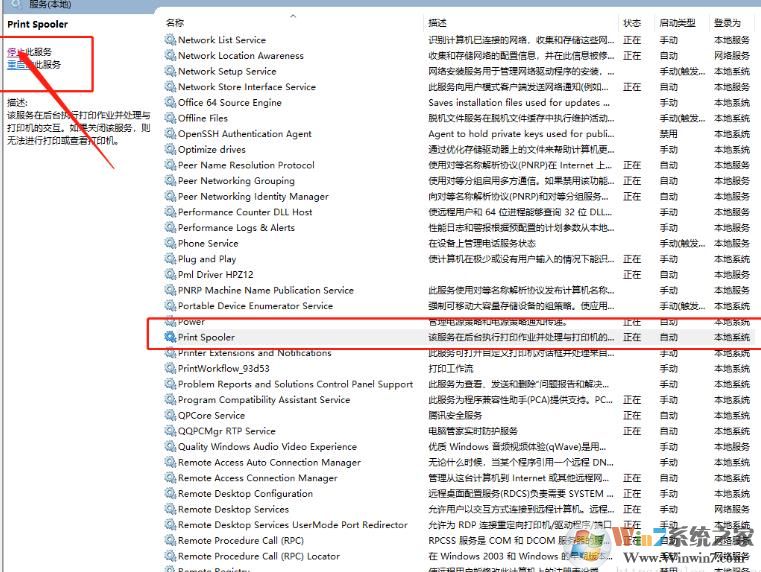 2、打開服務之后,我們找到Print Spooler服務(打印機服務);