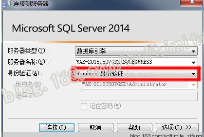 1. 在登錄窗口設(shè)置身份驗(yàn)證,使用Windows身份驗(yàn)證登錄數(shù)據(jù)庫。