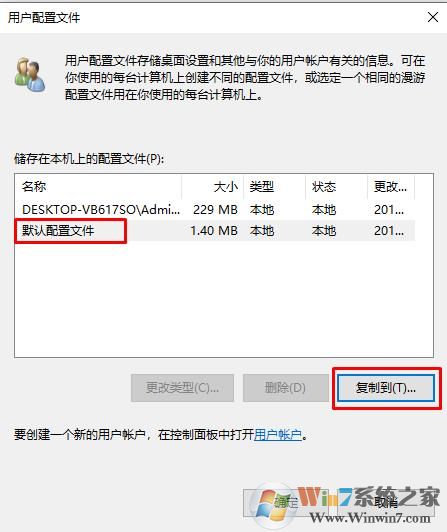 4、這時(shí)可以看到有個(gè)默認(rèn)配置文件,也只有它能夠復(fù)制,選中默認(rèn)配置文件后,點(diǎn)擊復(fù)制到,
