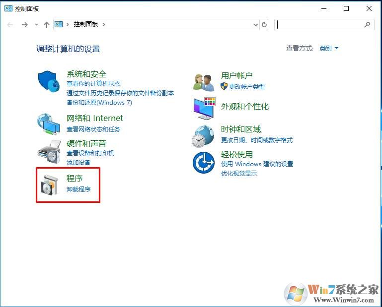 2、在控制面板中 點(diǎn)擊程序選項(xiàng);Win10
