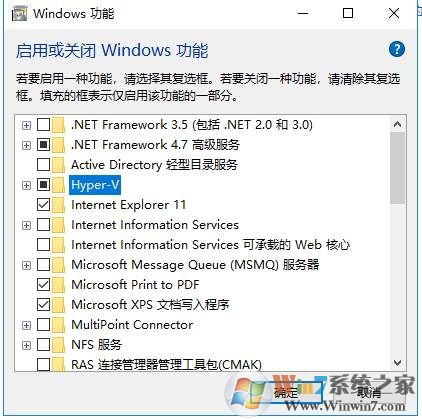 4、取消勾選Hyper-V 選項(xiàng),然后確定,這樣就可以把Hyper-v虛擬機(jī)給關(guān)閉掉。