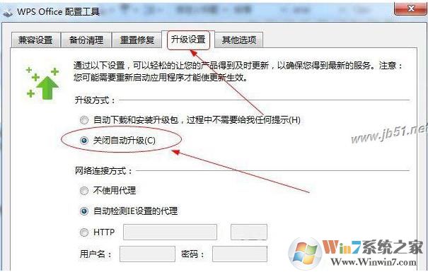5、選擇【升級設(shè)置】里面將升級方式選擇為關(guān)閉自動升級,自己升級的話有很多的廣告以及插件,這些都是會天天彈出來,非常的麻煩;