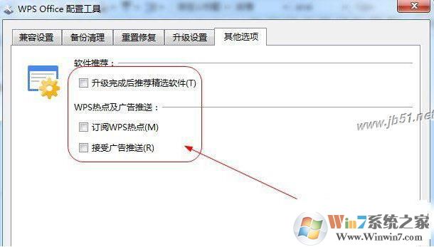6、在【其他選項】里面關(guān)掉所有的軟件推薦,然后點擊【確定】,大多數(shù)的廣告就是來至這里了,我們把訂閱、接受廣告推送這些都取消勾選,確定保存。