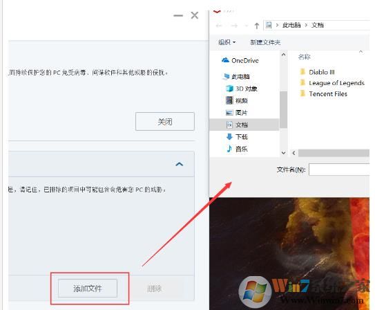 2、點擊添加文件,跳轉如圖,瀏覽選擇需要添加白名單的文件;
